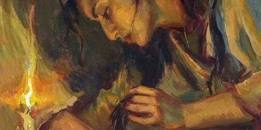 Sei giorni prima della Pasqua, Gesù andò a Betània, dove si trovava Làzzaro, che egli aveva risuscitato dai morti. E qui fecero per lui una cena: Marta serviva e Làzzaro era uno dei commensali. Maria allora prese trecento grammi di profumo di puro nardo, assai prezioso, ne cosparse i piedi di Gesù, poi li asciugò con i suoi capelli, e tutta la casa si riempì dellʼaroma di quel profumo.