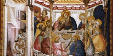 Dopo questi fatti Giuseppe di Arimatèa, che era discepolo di Gesù, ma di nascosto, per timore dei Giudei, chiese a Pilato di prendere il corpo di Gesù. Pilato lo concesse. Allora egli andò e prese il corpo di Gesù. Vi andò anche Nicodèmo – quello che in precedenza era andato da lui di notte – e portò circa trenta chili di una mistura di mirra e di áloe. Essi presero allora il corpo di Gesù e lo avvolsero con teli, insieme ad aromi, come usano fare i Giudei per preparare la sepoltura. Ora, nel luogo dove era stato crocifisso, vi era un giardino e nel giardino un sepolcro nuovo, nel quale nessuno era stato ancora posto. Là dunque, poiché era il giorno della Parascève dei Giudei e dato che il sepolcro era vicino, posero Gesù.